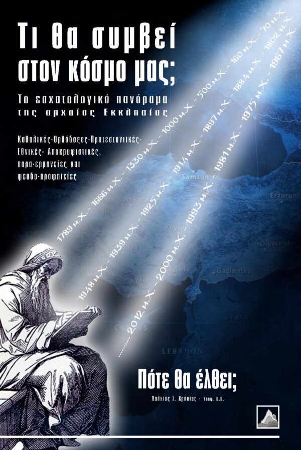 Παρασκευαϊδης-Χαλ Λίντσεη – Α. Μαρκάκης-Αρνέλλος-Μύλλερ-Χουάϊτ – Ρώσσελ – Κοσμάς Φλαμιάτος – Ανθιμος Ιεροσολύμων – Ιρβιγκ – Ντάρμπυ – Κοσμάς Αιτωλός – Γεώργιος Κορέσιος – Αναστάσιος Γόρδιος – Θεοδώρητος Ιωαννίνων – Αγαθάγγελος – Νοστράδαμος – Λούθηρος – Συμεών Θεσσαλονίκης – Ιωακείμ της Φιόρα – Θεοφύλακτος Βουλγαρίας – Ακινάτης – Φώτιος – Δαμασκηνός – Οικουμένιος – Αρέθας – Ανδρέας Καισαρείας – Κύριλλος Ιεροσολύμων – Θεοδώρητος Κύρου – Αυγουστίνος – Χρυσόστομος – Θεόδωρος Μοψουεστίας – Λακτάντιος – Βικτωρίνος – Ευσέβιος – Κλήμης Αλέξ. – Ωριγένης – Ιουστίνος – Ειρηναίος – Ιππόλυτος – Τερτυλλιανός – Διδαχή – Βαρνάβας- Ερμάς – Παπίας – Β’ ΘΕΣ/ΚΕΙΣ- ΑΠΟΚΑΛΥΨΗ – ΔΑΝΙΗΛ – ΙΗΣΟΥΣ ΧΡΙΣΤΟΣ